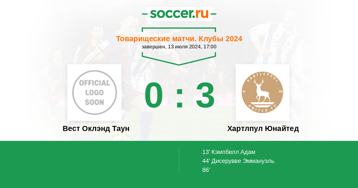 Вест Оклэнд Таун - Хартлпул Юнайтед: обзор матча 13 июля 2024