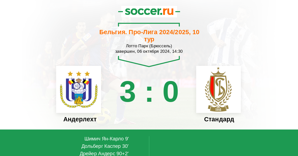 Андерлехт - Стандард: обзор матча 6 октября 2024