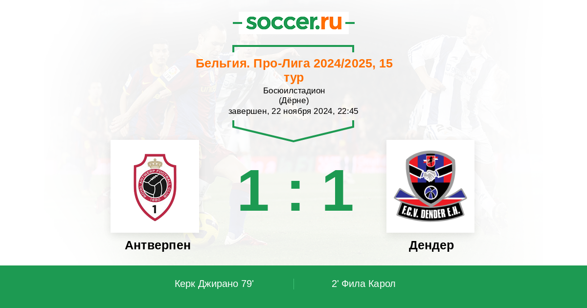 Антверпен - Дендер: обзор матча 22 ноября 2024