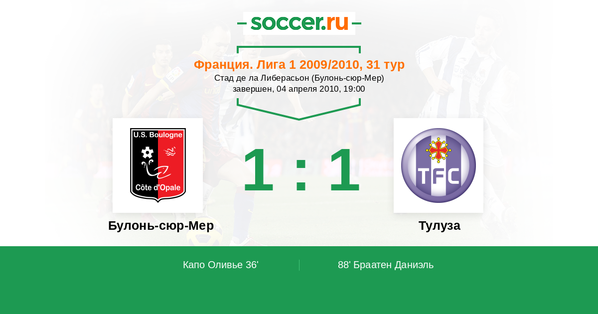 Булонь-сюр-Мер - Тулуза: обзор матча 4 апреля 2010