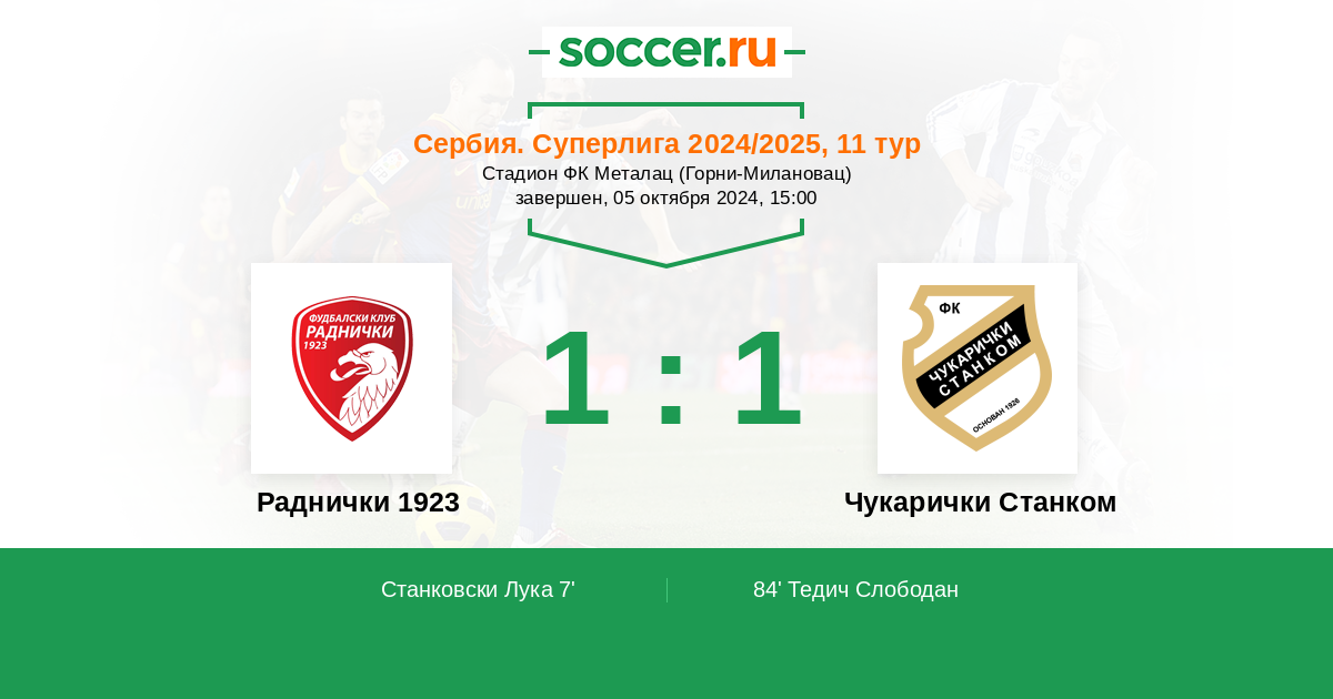 Раднички 1923 - Чукарички Станком: обзор матча 5 октября 2024