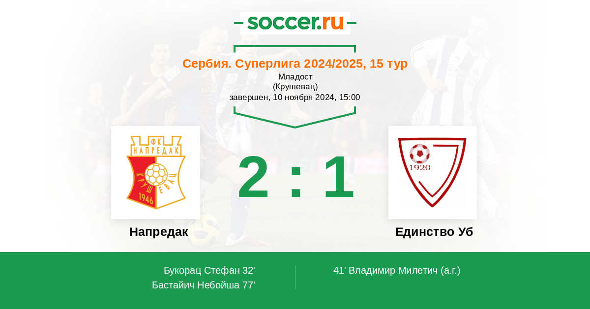 Напредак - Единство Уб: обзор матча 10 ноября 2024