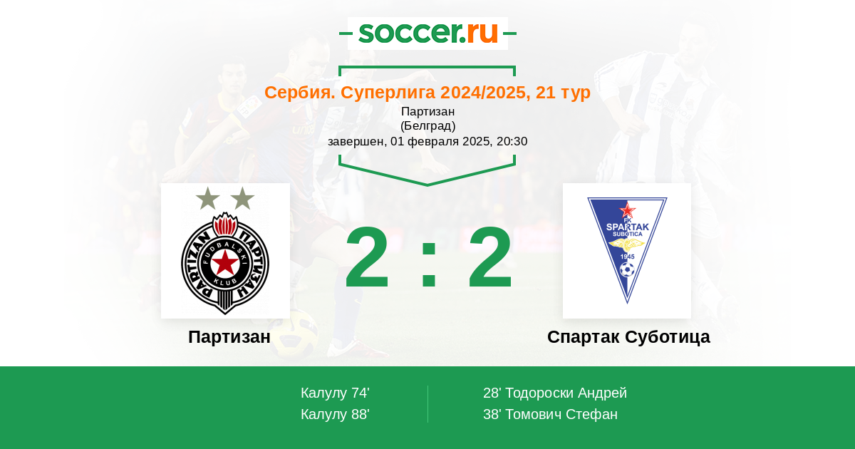 Партизан - Спартак Суботица: обзор матча 1 февраля 2025