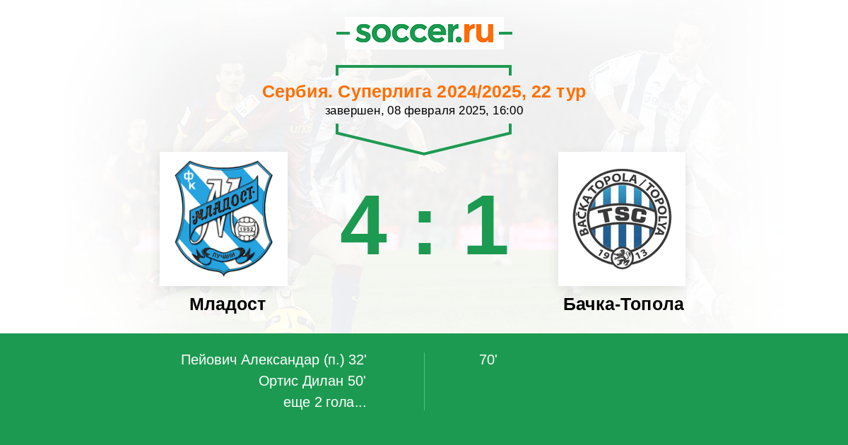 Младост - Бачка-Топола: обзор матча 8 февраля 2025