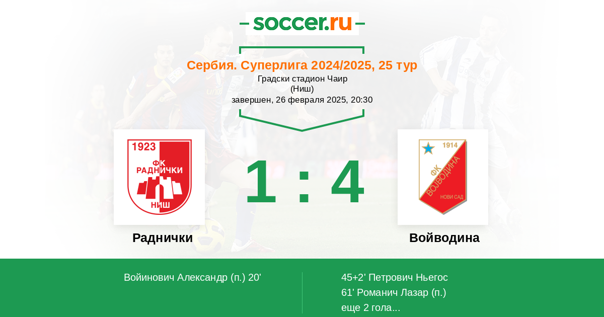 Раднички - Войводина: обзор матча 26 февраля 2025