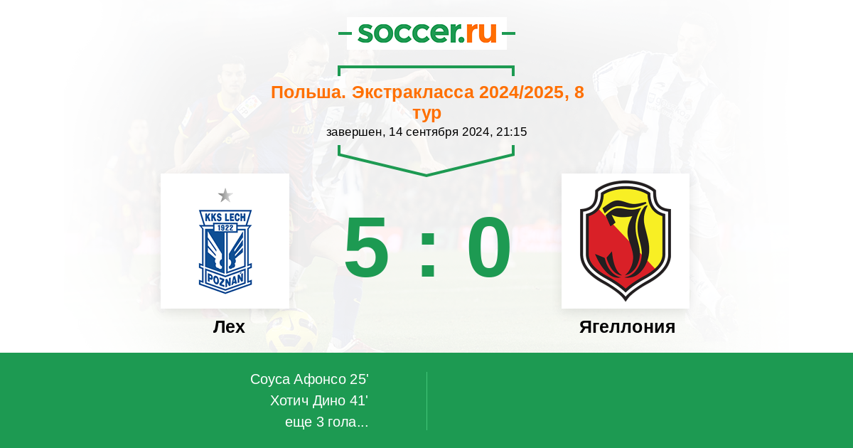 Лех - Ягеллония: обзор матча 14 сентября 2024