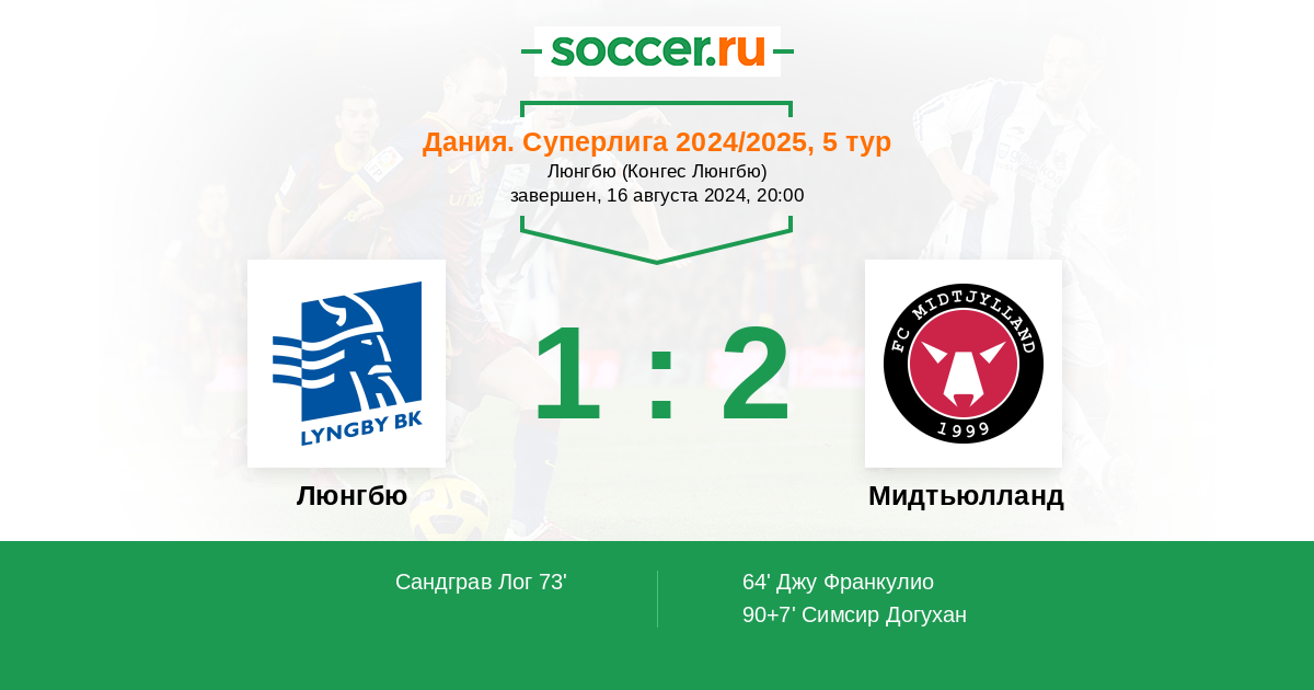 Люнгбю - Мидтьюлланд: обзор матча 16 августа 2024