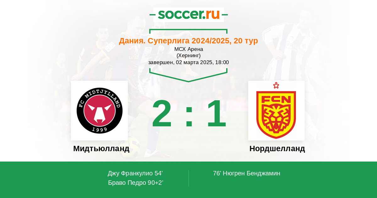 Мидтьюлланд - Нордшелланд: обзор матча 2 марта 2025