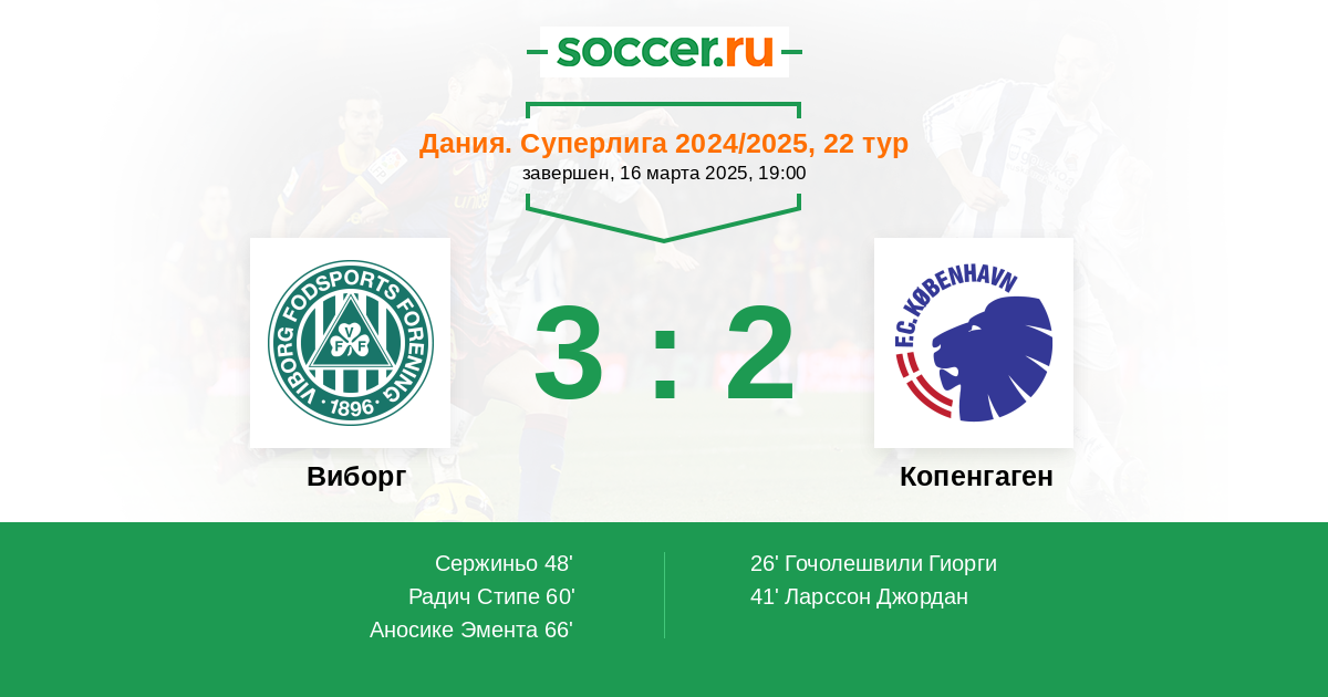 Виборг - Копенгаген: обзор матча 16 марта 2025