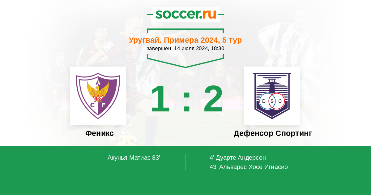 Феникс - Дефенсор Спортинг: обзор матча 14 июля 2024