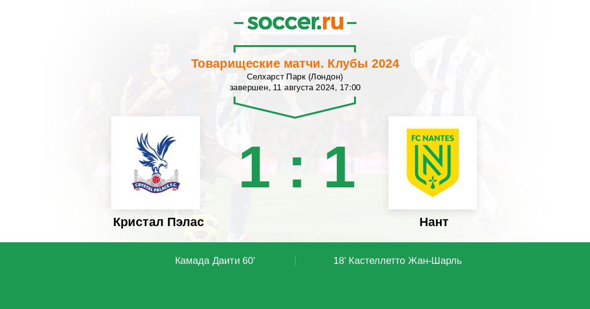 Кристал Пэлас - Нант: обзор матча 11 августа 2024