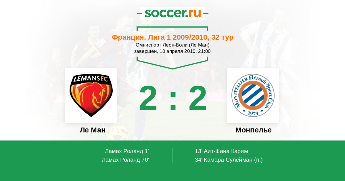Ле Ман - Монпелье: обзор матча 10 апреля 2010