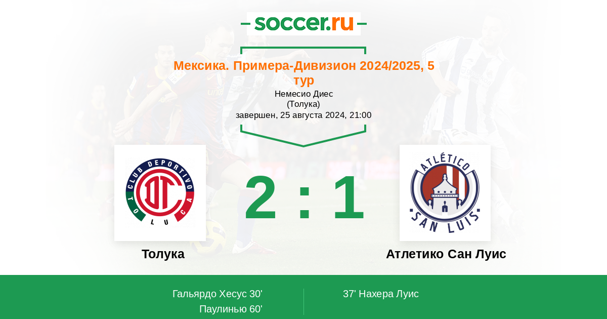 Толука - Атлетико Сан Луис: обзор матча 25 августа 2024