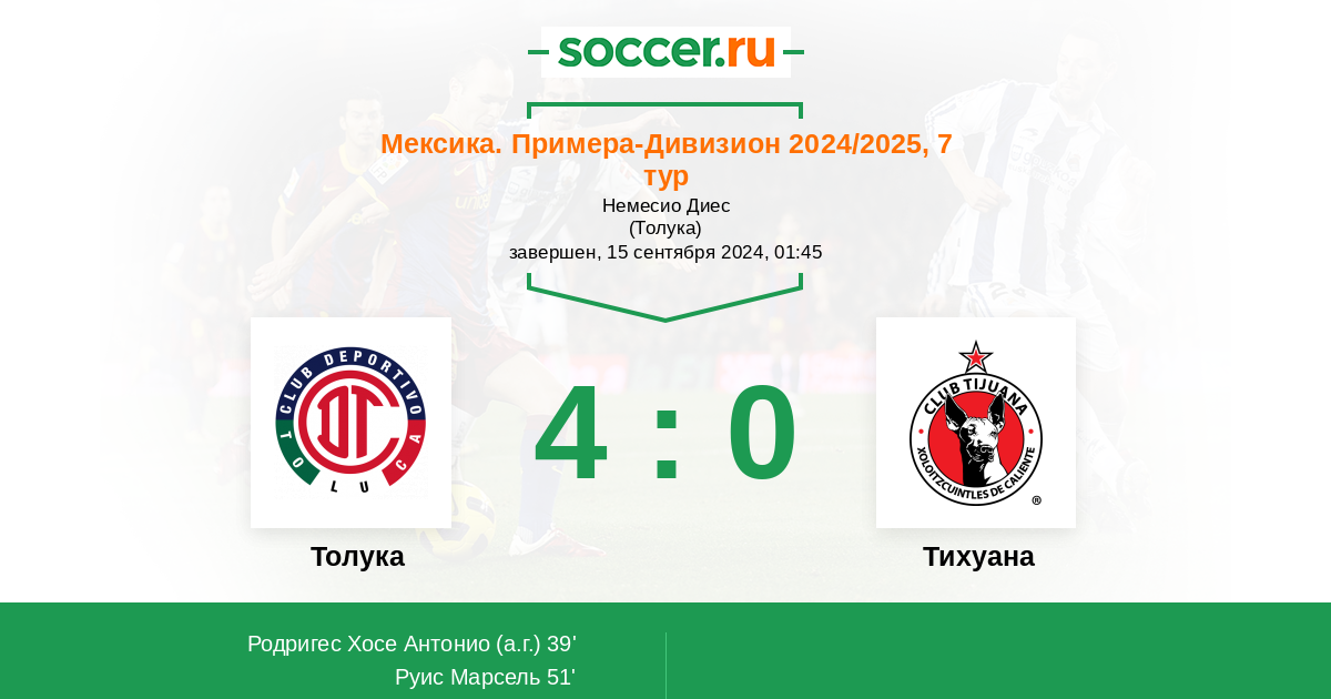 Толука - Тихуана: обзор матча 15 сентября 2024