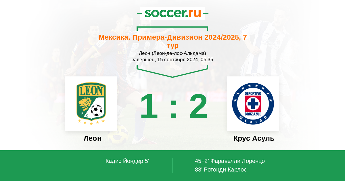 Леон - Крус Асуль: обзор матча 15 сентября 2024