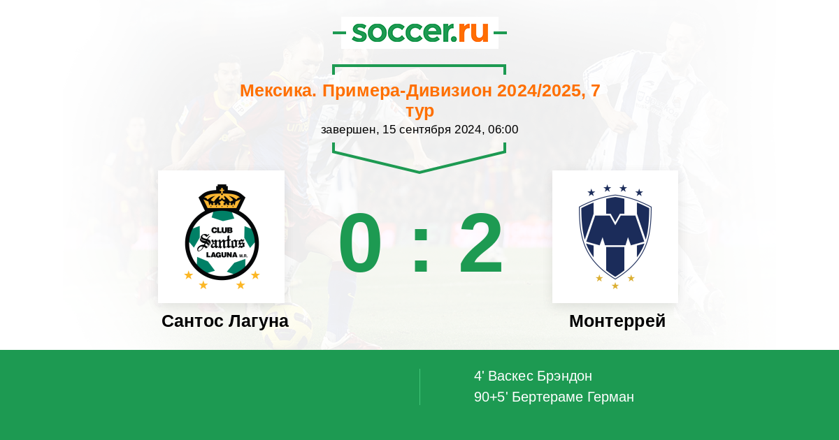 Сантос Лагуна - Монтеррей: обзор матча 15 сентября 2024
