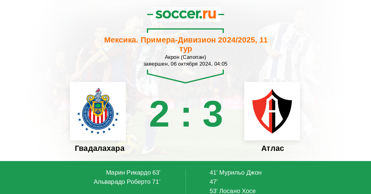 Гвадалахара - Атлас: обзор матча 6 октября 2024
