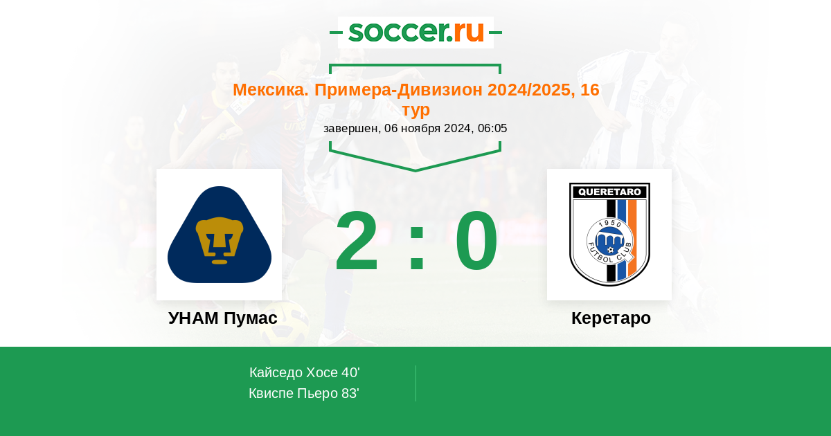 УНАМ Пумас - Керетаро: обзор матча 6 ноября 2024