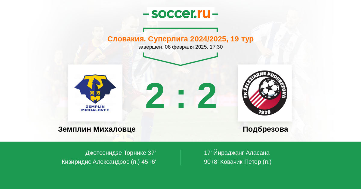 Земплин Михаловце - Подбрезова: обзор матча 8 февраля 2025