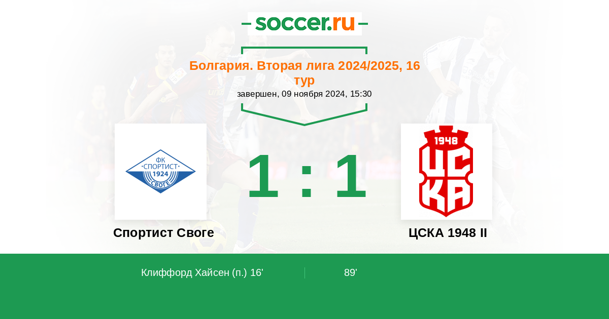 Спортист Своге - ЦСКА 1948 II: обзор матча 9 ноября 2024