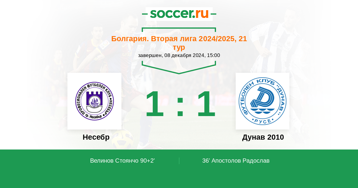 Несебр - Дунав 2010: обзор матча 8 декабря 2024