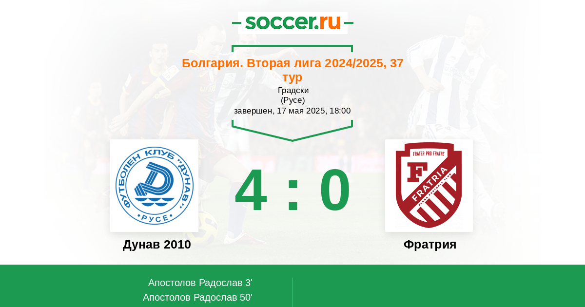 Дунав 2010 - Фратрия: обзор матча 17 мая 2025