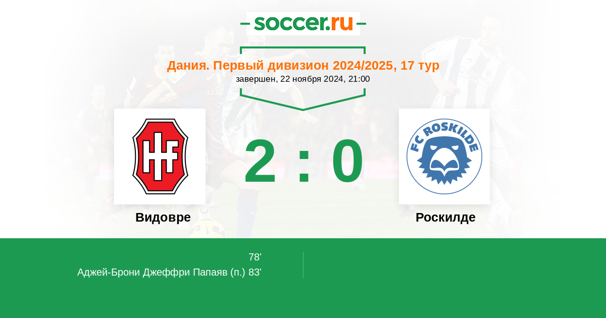 Видовре - Роскилде: обзор матча 22 ноября 2024