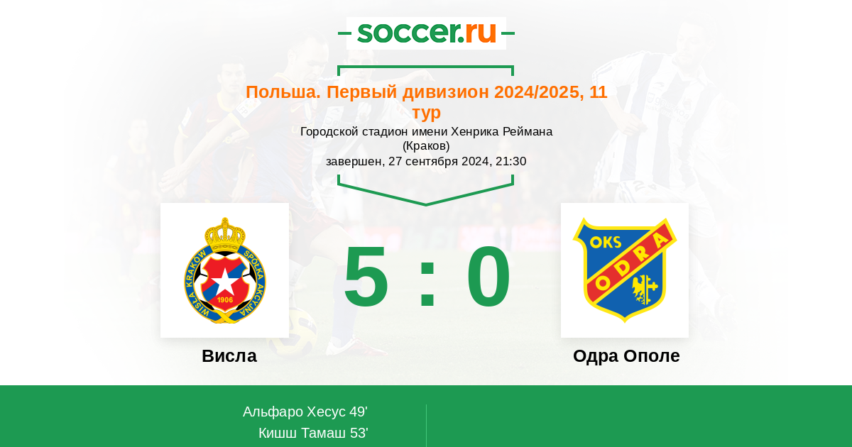 Висла - Одра Ополе: обзор матча 27 сентября 2024