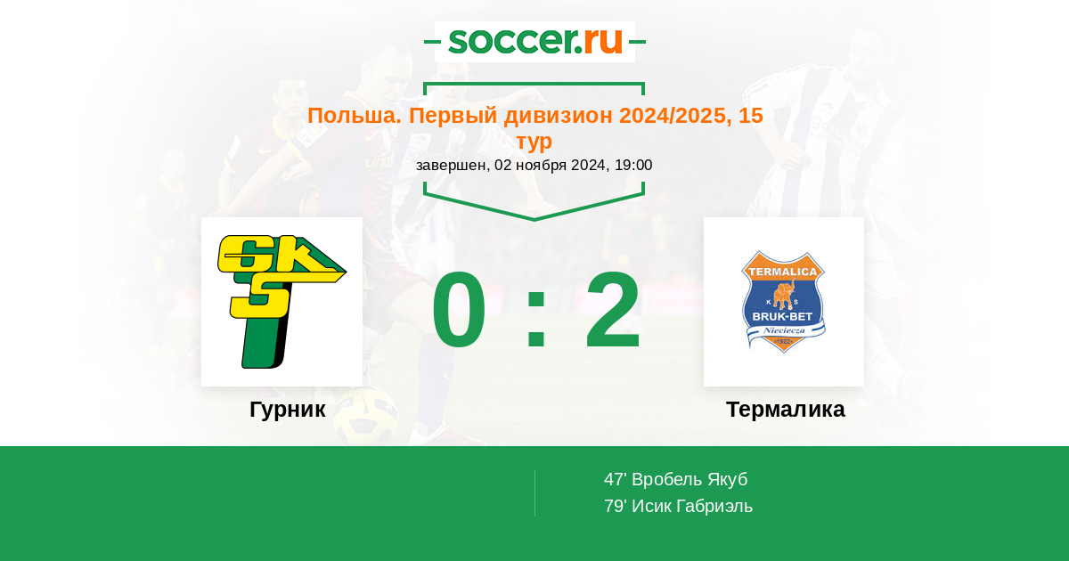Гурник - Термалика: обзор матча 2 ноября 2024