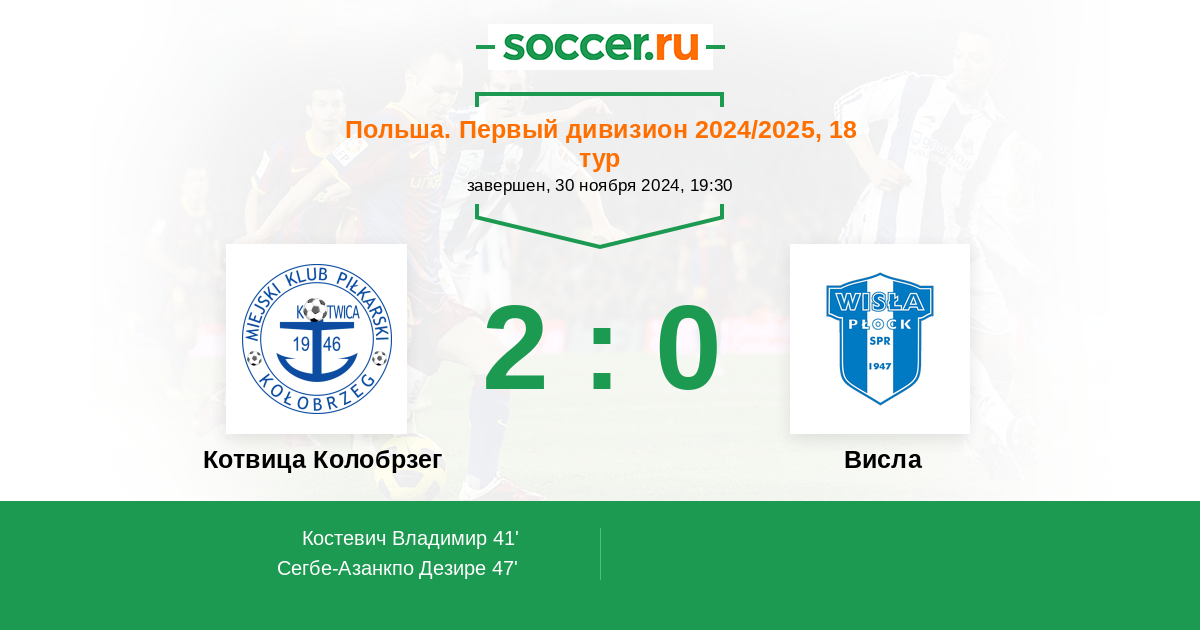 Котвица Колобрзег - Висла: обзор матча 30 ноября 2024