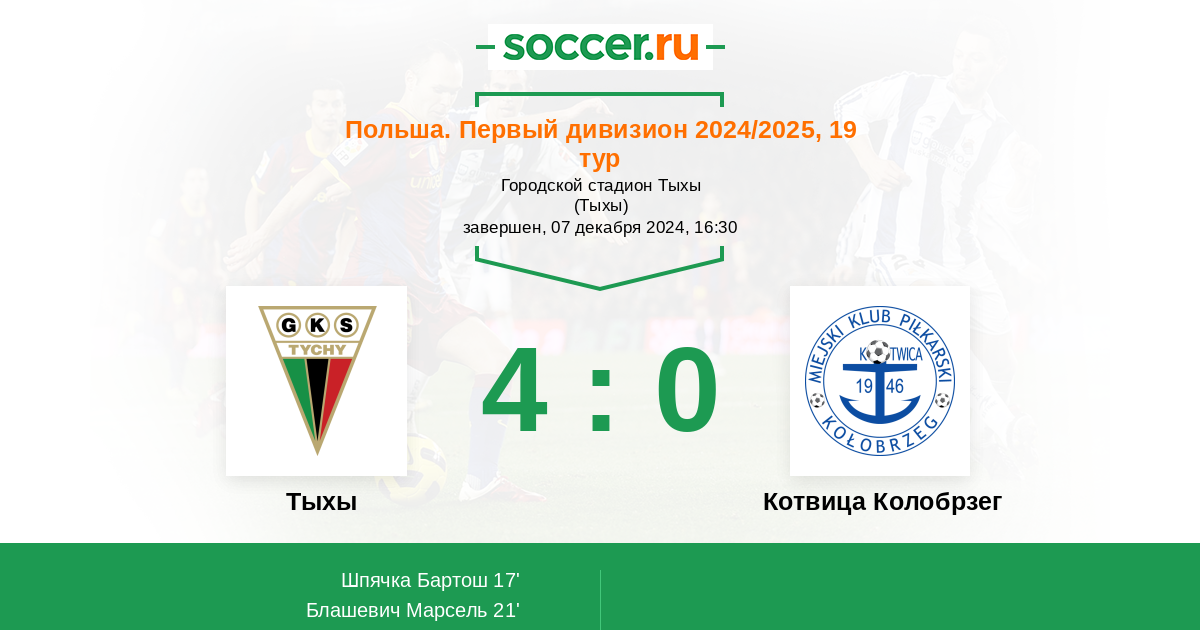 Тыхы - Котвица Колобрзег: обзор матча 7 декабря 2024