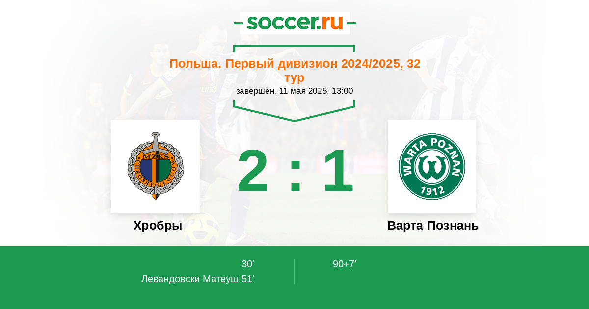 Хробры - Варта Познань: обзор матча 11 мая 2025