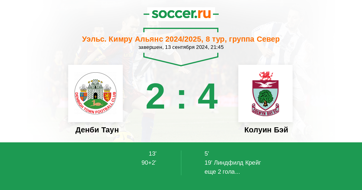 Денби Таун - Колуин Бэй: обзор матча 13 сентября 2024