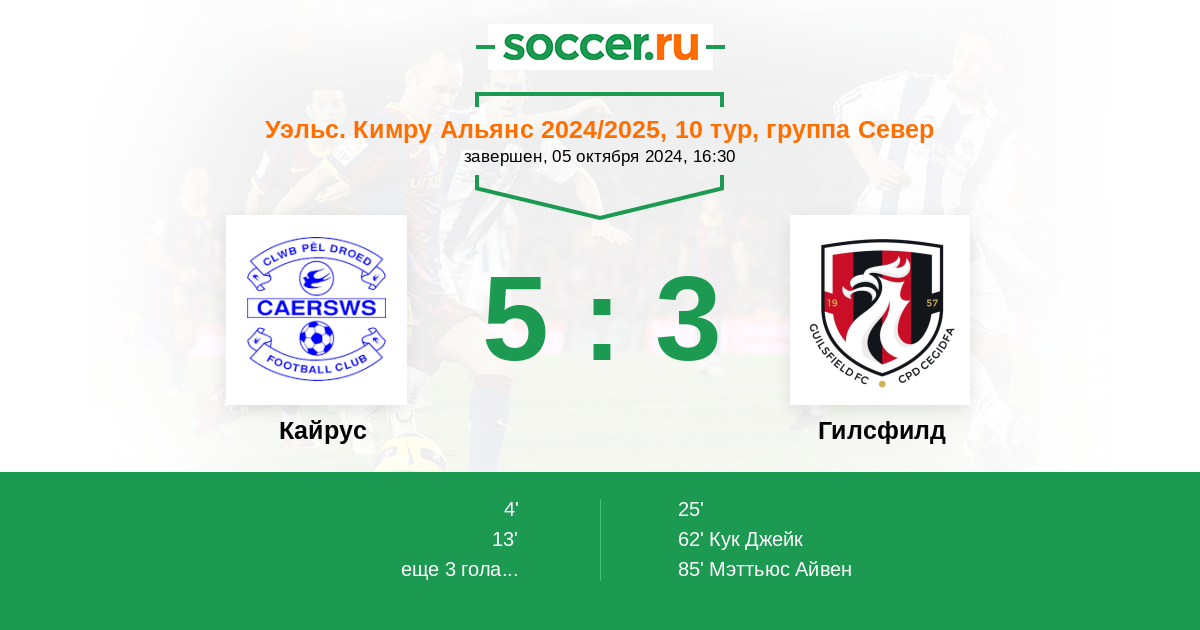 Кайрус - Гилсфилд: обзор матча 5 октября 2024
