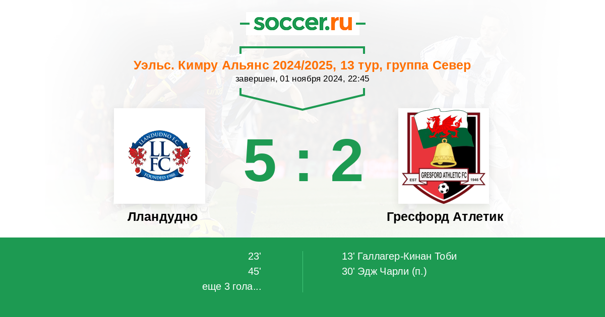 Лландудно - Гресфорд Атлетик: обзор матча 1 ноября 2024