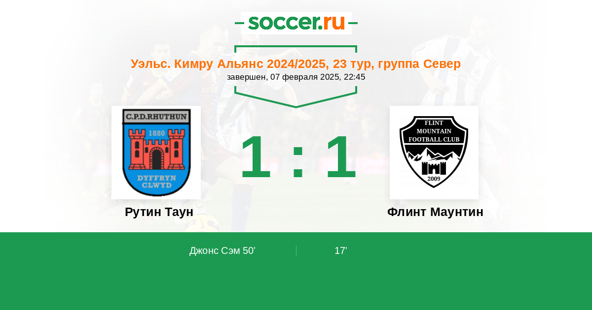 Рутин Таун - Флинт Маунтин: обзор матча 7 февраля 2025
