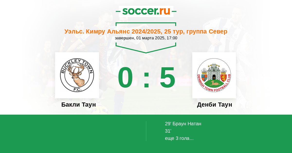 Бакли Таун - Денби Таун: обзор матча 1 марта 2025