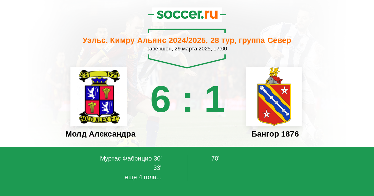 Молд Александра - Бангор 1876: обзор матча 29 марта 2025