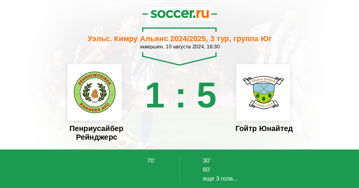 Пенриусайбер Рейнджерс - Гойтр Юнайтед: обзор матча 10 августа 2024