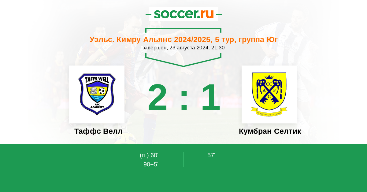 Таффс Велл - Кумбран Селтик: обзор матча 23 августа 2024