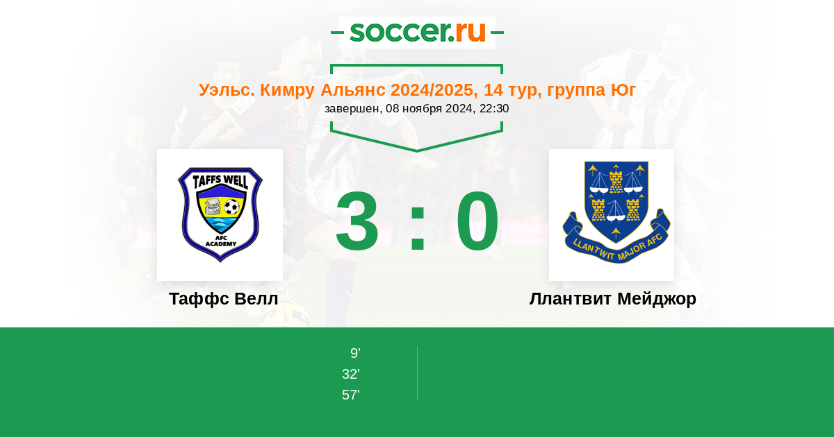 Таффс Велл - Ллантвит Мейджор: обзор матча 8 ноября 2024