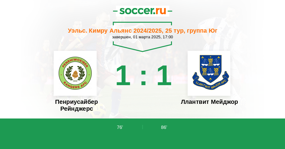 Пенриусайбер Рейнджерс - Ллантвит Мейджор: обзор матча 1 марта 2025