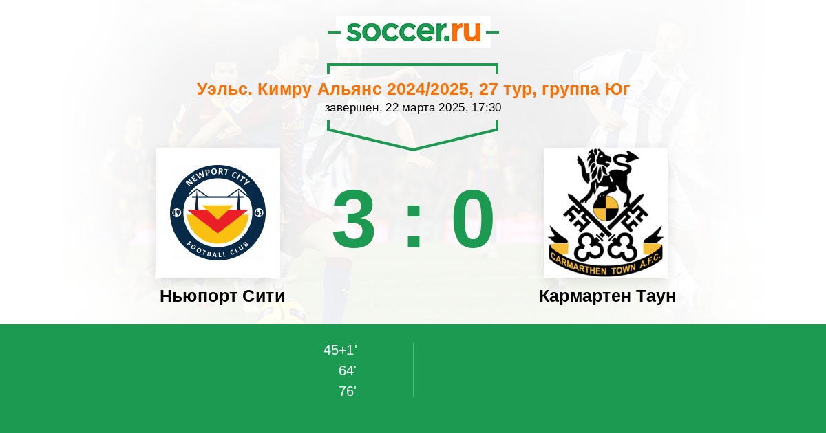 Ньюпорт Сити - Кармартен Таун: обзор матча 22 марта 2025