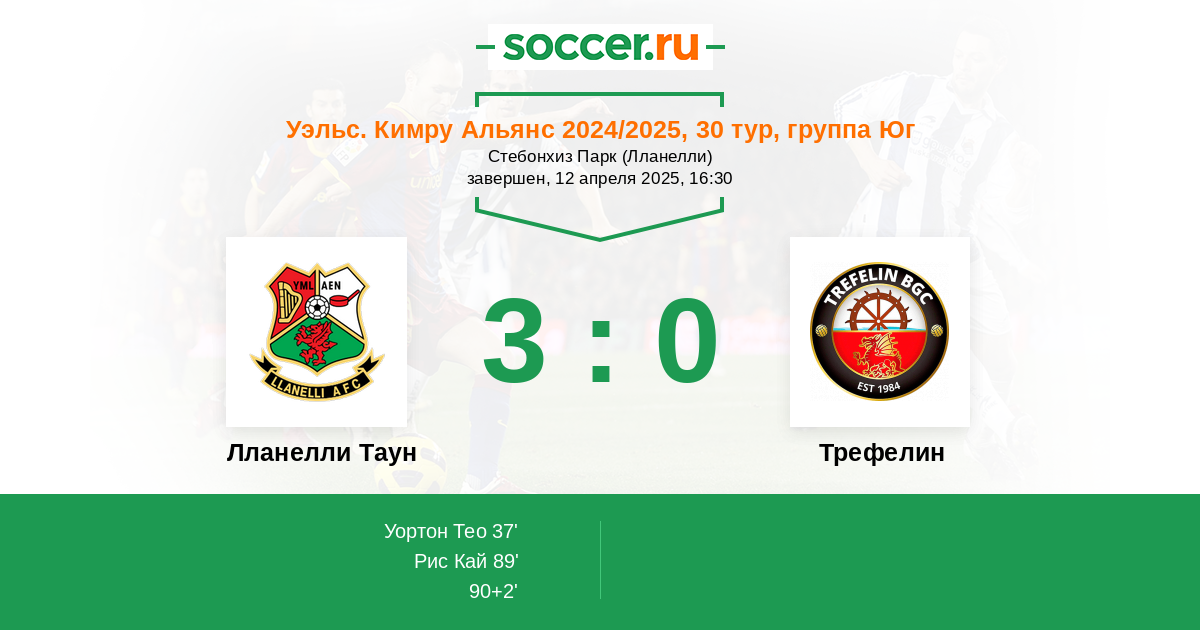 Лланелли Таун - Трефелин: обзор матча 12 апреля 2025