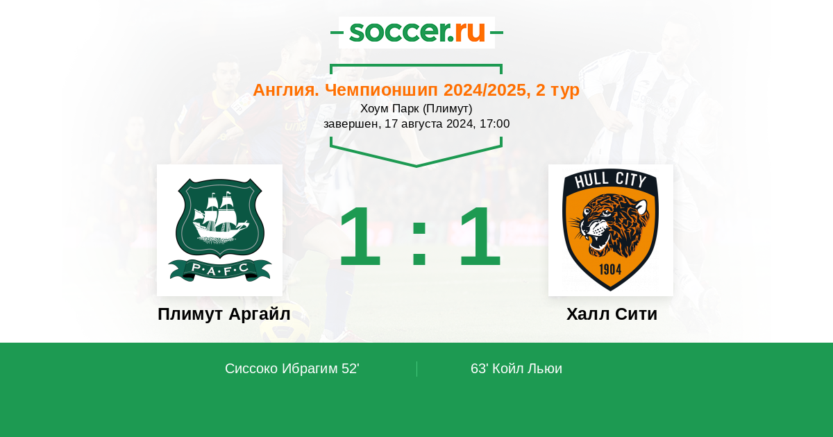 Плимут Аргайл - Халл Сити: обзор матча 17 августа 2024