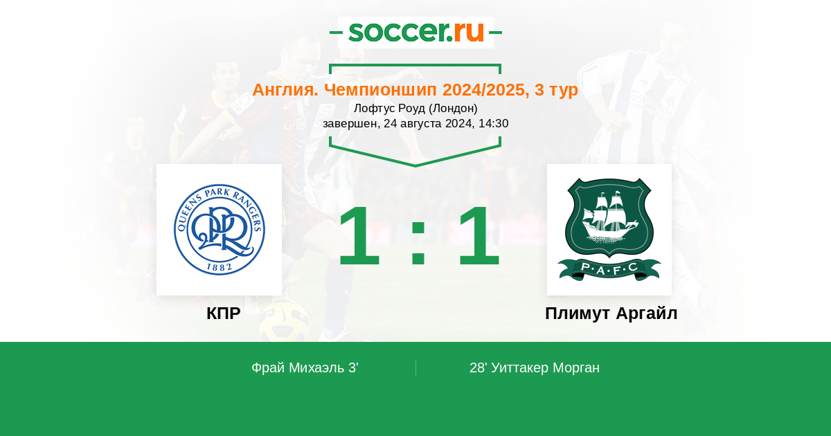 КПР - Плимут Аргайл: обзор матча 24 августа 2024