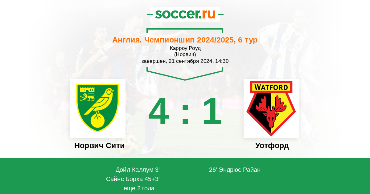 Норвич Сити - Уотфорд: обзор матча 21 сентября 2024