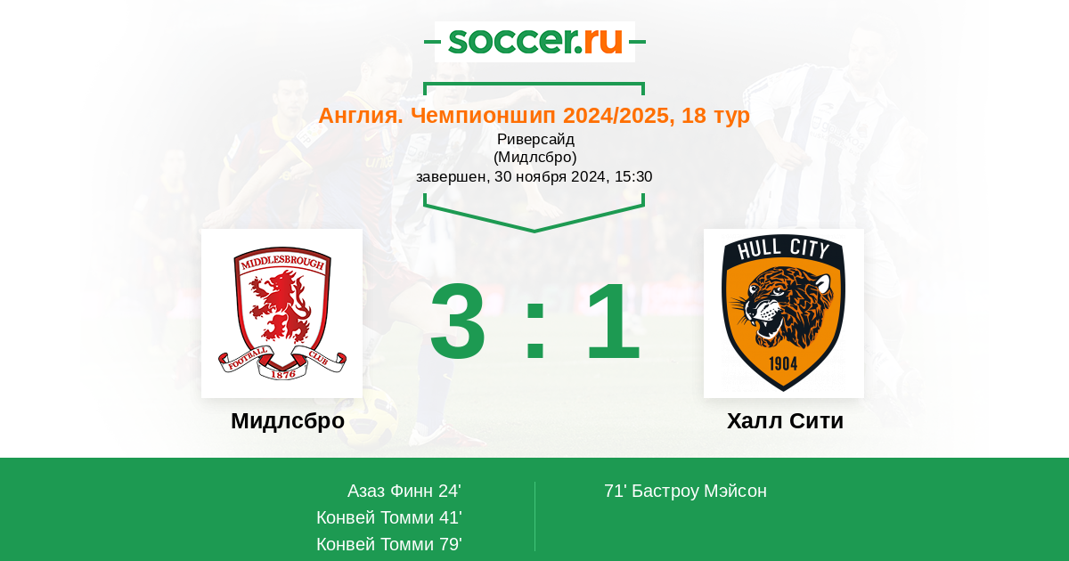 Мидлсбро - Халл Сити: обзор матча 30 ноября 2024