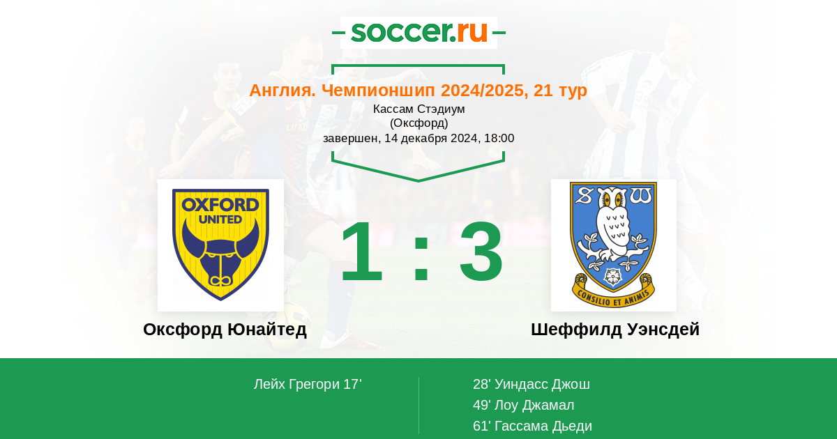 Оксфорд Юнайтед - Шеффилд Уэнсдей: обзор матча 14 декабря 2024