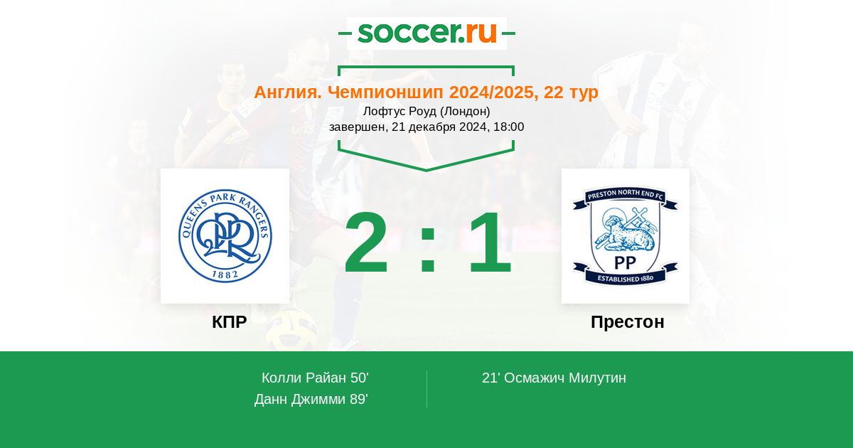 КПР - Престон: обзор матча 21 декабря 2024